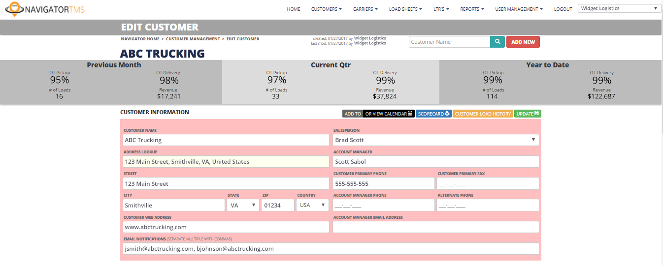 Track a carrier's on-time pickup and delivery percentages to keep your carriers accountable to your business.
