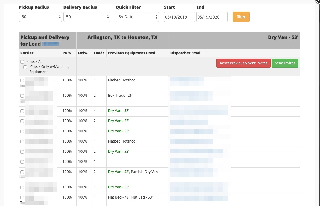 The most efficient load booking tool in the industry! Book loads without using a telephone, or through creating mass emails. This revolutionary tool communicates with carriers active in your lanes to quickly cover your loads